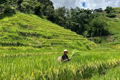 Llegada por la mañana a la estación de Lao Cai. Después de descansar y refrescarnos en un pequeño hotel, comenzamos la mañana con un descubrimiento del hermoso valle de Y Linh Ho, luego continuamos el camino hacia el valle de Lao Chai y Ta Van. La caminata nos muestra paisajes espectaculares, salvajes y románticos: terrazas de arroz, puente colgante, la vida de los grupos étnicos como Zay y H’Mong…