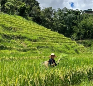 En el camino, hacemos algunas paradas como la colina Kim Noi para tomar fotografías y ver las vistas completas de la ciudad de Mu Cang Chai. Luego, caminamos un poco hasta "Mam Xoi" para disfrutar del hermoso paisaje.