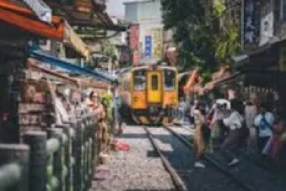 Después del desayuno, visita el Mercado de tren de Maeklong, donde los vendedores retiran sus puestos cuando pasa el tren. Luego, visita el mercado flotante de Damnoen Saduak y explora los canales y la vida local. Regresa a Bangkok y pasa la noche en Bangkok.