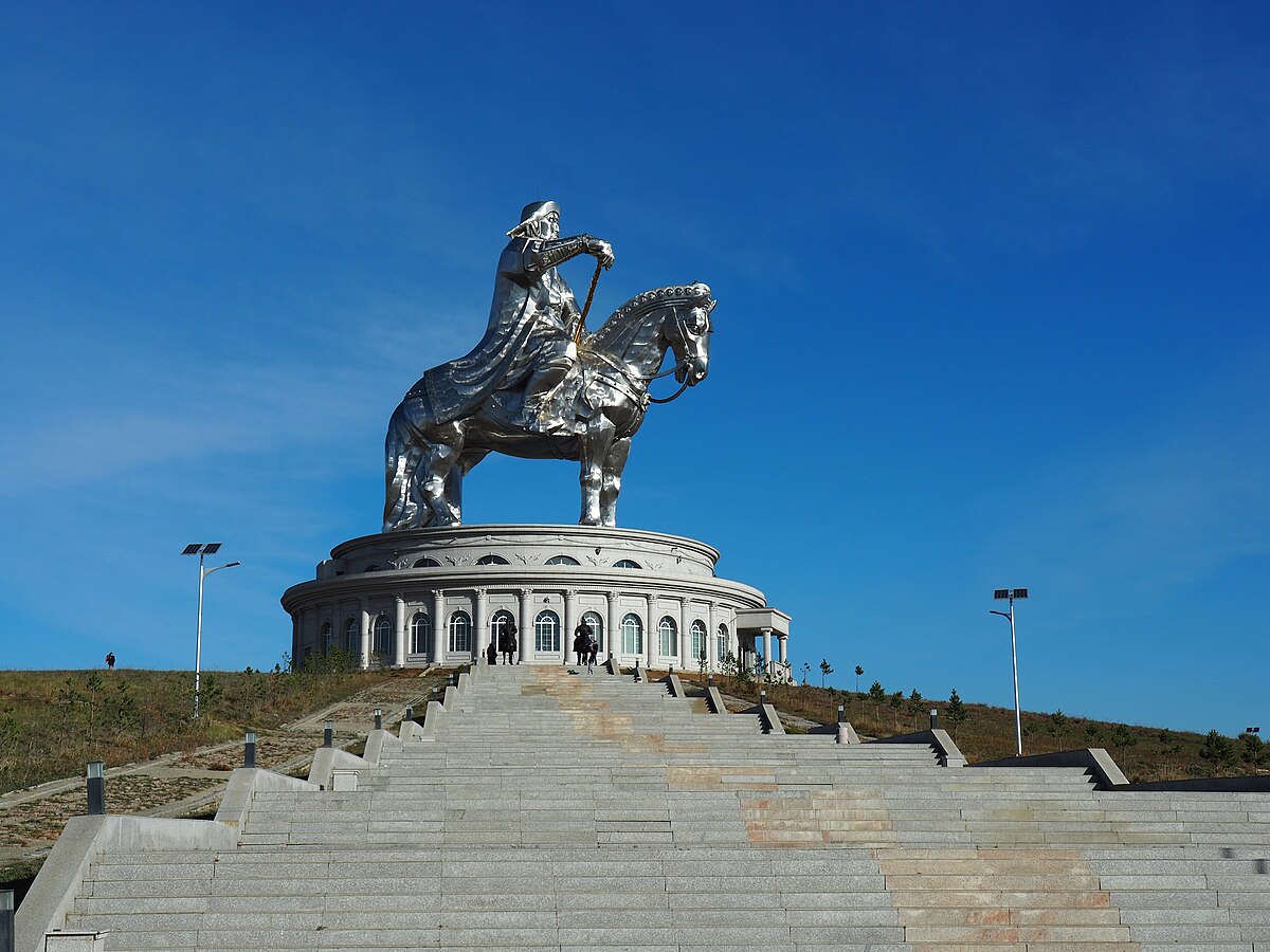 Desayuno 09:00 AM – Encuentro con nuestro equipo en la recepción del hotel. Salida hacia la Gran Estatua Ecuestre de Genghis Khan, de 40 metros de altura, situada a unos 55 km al noreste de Ulán Bator (1–1.30 hrs de viaje). Esta impresionante escultura, símbolo del lugar donde nació el legendario líder mongol, forma parte de un gran complejo con centro de visitantes y museo. La estatua, montada sobre un caballo de acero, representa a Genghis Khan sosteniendo su látigo dorado. Los visitantes pueden subir por el interior del caballo hasta la cabeza, desde donde se disfruta una vista panorámica del entorno.