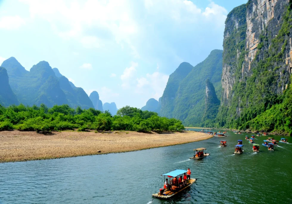 Desayuno buffet. Crucero por el Rio Li,tomamos un barco para efectuar un paseo por el Rio Lijiang,donde disfrutaremos de unas vistas extraordinarias contemplando la Colina del Bordado,la colina de la Pelea de Gallos y otros majestuosos escenarios.Incluye almuerzo en el barco.Por la tarde un paseo por las calles de Yangshuo. Regresan a Guilin en auto.