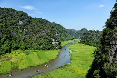 Después del desayuno, salimos rumbo a Ninh Binh, una región conocida como "la Bahía de Ha Long en tierra" por sus espectaculares paisajes de montañas kársticas y arrozales.