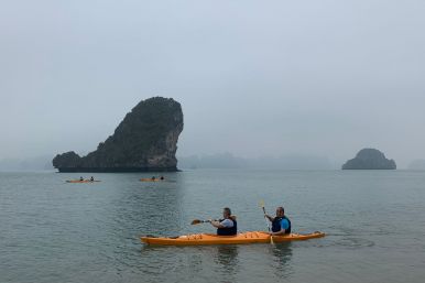 Tras el desayuno, nos dirigiremos al muelle donde embarcamos en un barco grande. Disfrutaremos un cóctel de bienvenida, luego degustaremos un delicioso almuerzo a bordo. Visitamos las islas e islotes del archipiélago y participamos en las actividades en embarcación. Una tranquila noche a bordo de nuestro cómodo junco en cabinas privadas. Alojamiento en el barco.